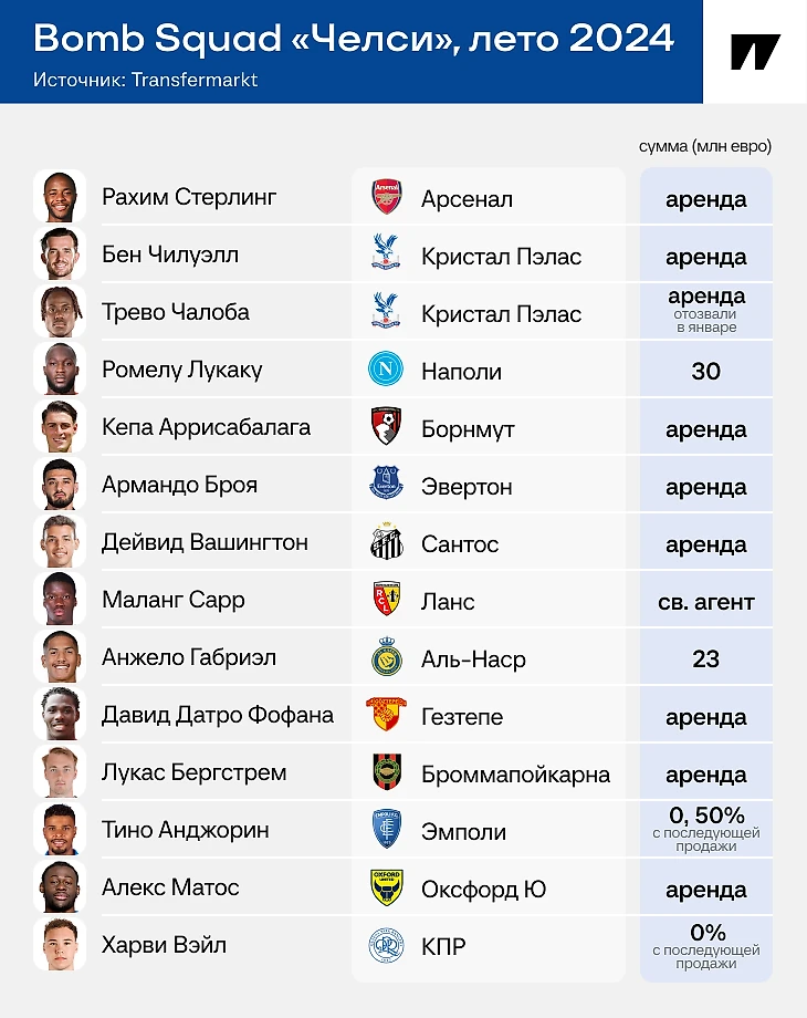 Летом 2024 года «Челси» снова собрал bomb squad – на этот раз в нем было еще больше футболистов. 14 игроков!