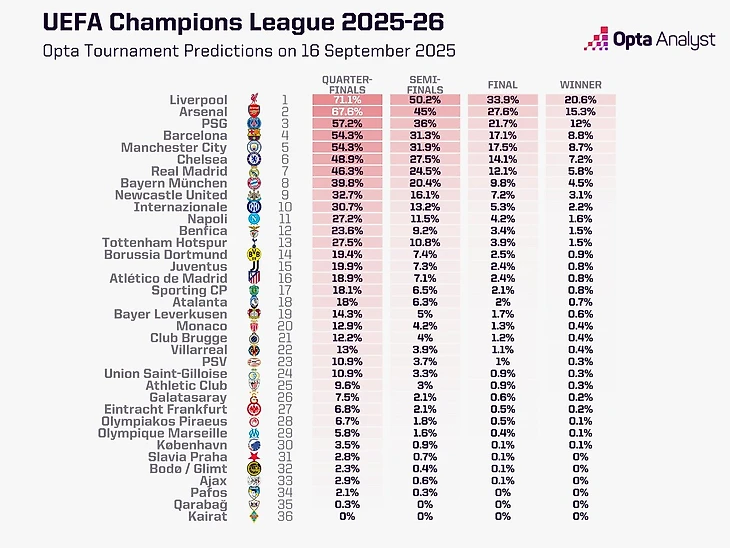 📈 Opta считает «Ливерпуль» фаворитом ЛЧ. Клуб из Англии выиграет турнир с вероятностью в 56% 🤯