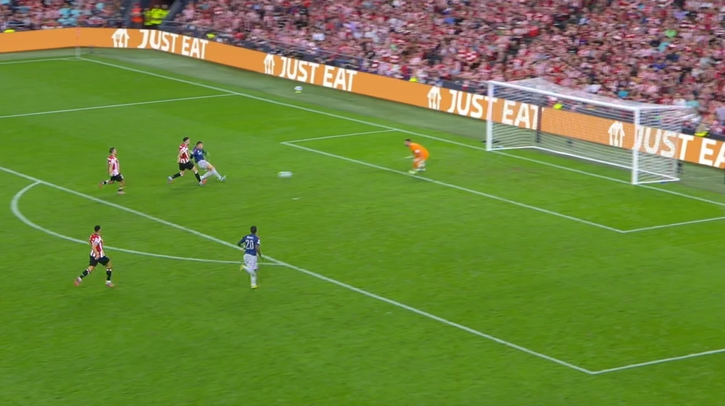 Больше часа баски держали 0:0, но главное случилось, когда Троссард отправил в прорыв Мартинелли, бразилец реализовал выход один на один. Он умчал почти с центра поля.