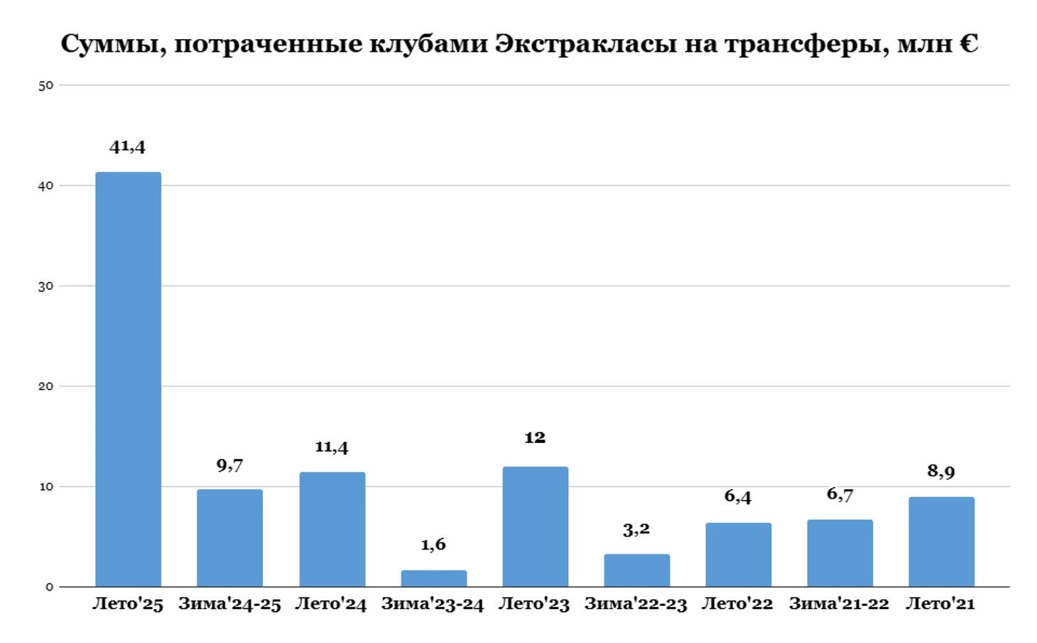При этом это не вызвано рекордными продажами. На продажах футболистов клубы Экстракласы заработали за лето сорок миллионов, это на четыре с половиной миллиона меньше, чем клубы заработали прошлым летом, при этом год назад на приобретения восемнадцать клубов Экстракласы потратили всего 11,4 миллиона евро.