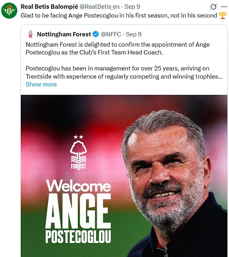 «Рады, что встретимся с Постекоглу в его первом сезоне, а не во втором 🏆».