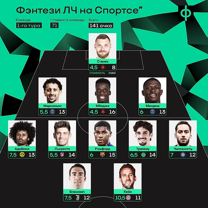 Перед вами сборная 1-го тура фэнтези-турнира Лиги чемпионов на Спортсе’‘:
