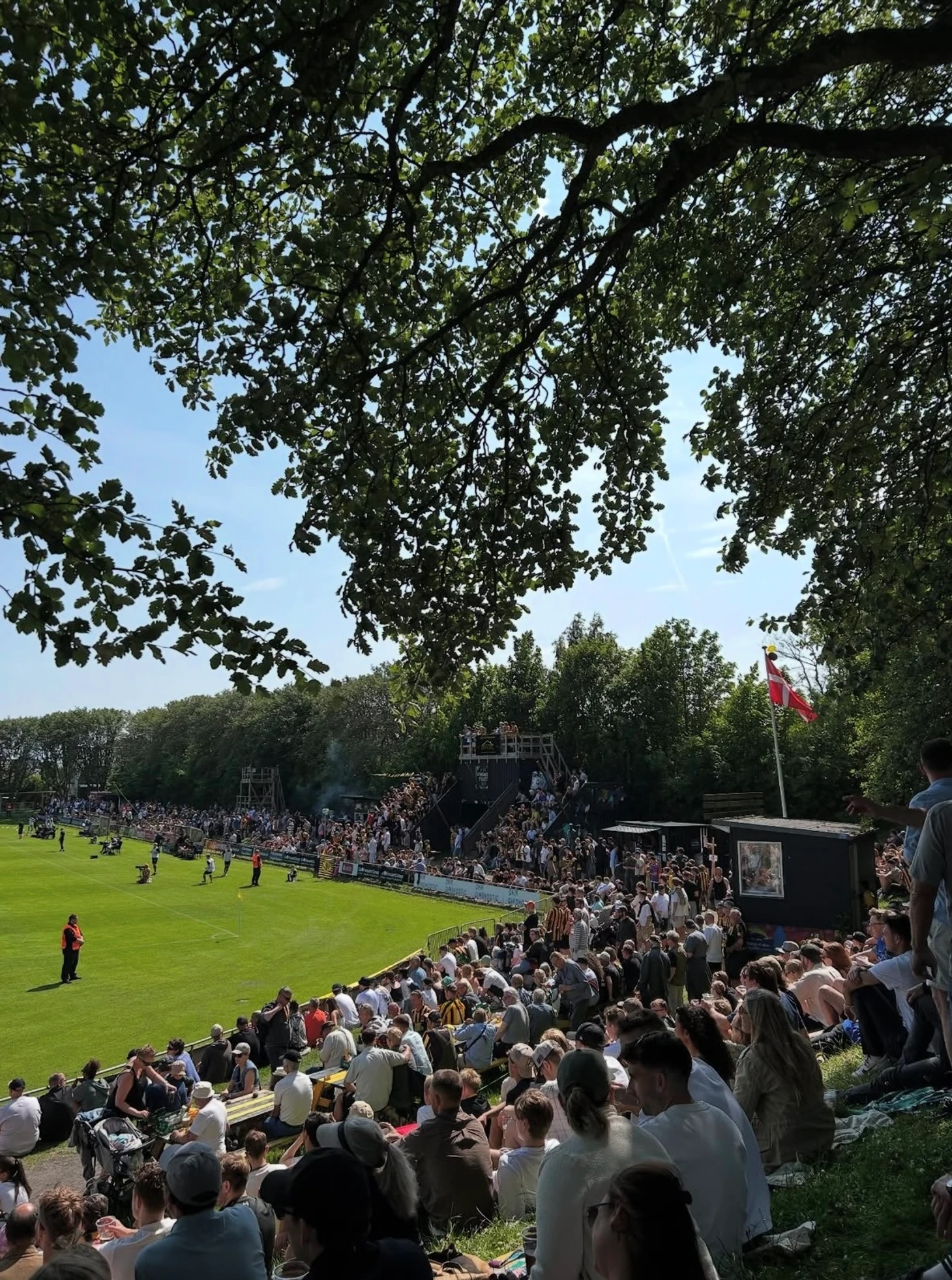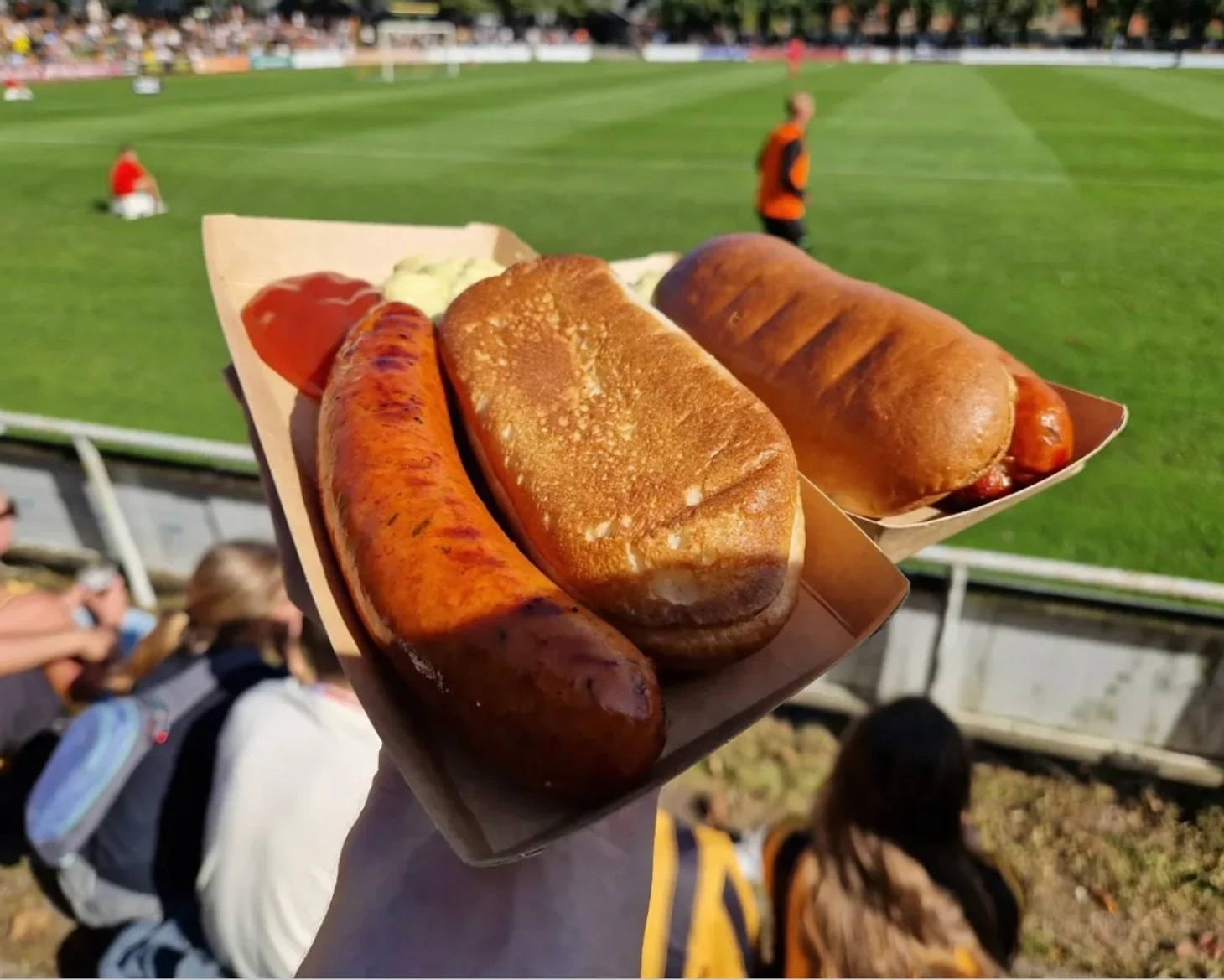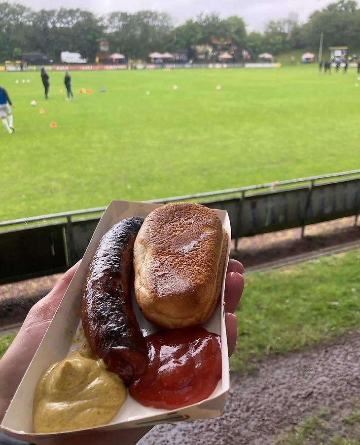Стадион в лучших традициях олдскула: натуральный газончик, ручное табло, лавочки по периметру и клубный дом, где продаются сочнейшие бургеры.