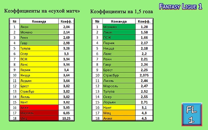 Монако – главный фаворит в туре и кандидат на разгромную победу. Продолжают пребывать в лазарете основной вратарь Лукаш Градецки (ВР, 5.5) и Александр Головин (ПЗ, 7.5) к которым на этой неделе добавился Денис Закария (ПЗ, 7.5). В хорошей форме находится Такуми Минамино (, ПЗ, 7.5, 2+1 в последних трёх матчах). Активны в атаке Балогун (НП, 7.5, 9 ударов) и Магн Аклиуш (ПЗ, 8.5, 2+1, 7 ключевых передач, 30 ФО). В надежде на сухой матч можно рассмотреть защитников: Кайо Энрике (ЗЩ, 6), Вандерсон (ЗЩ, 6), Керер (ЗЩ, 6), Уаттара (ЗЩ, 5), но Ади Хютер проводит ротацию в защитной линии, так что тут можно просто не угадать. У Меца трудно кого-либо выделить под такой тур.