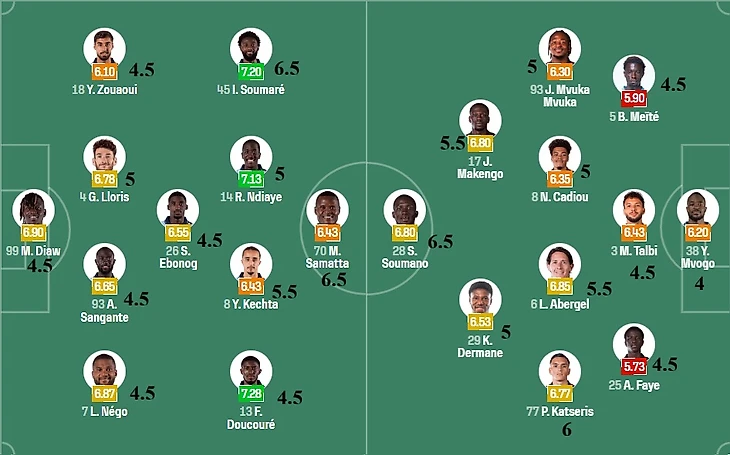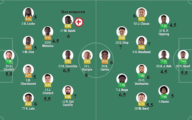 Под вопросом: Салису (Монако, ЗЩ, 5.5), Мбайе (Мец, ПЗ, 5), Мбула (Мец, ЗЩ, 4.5)