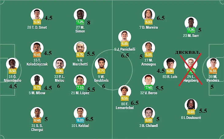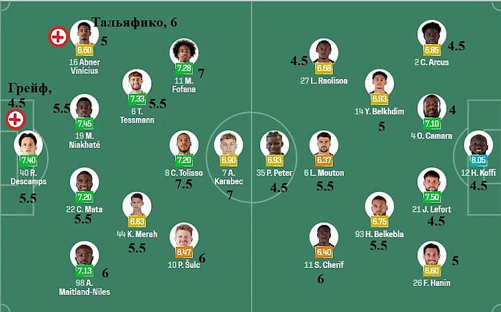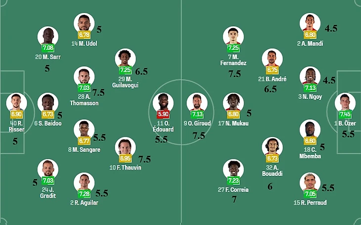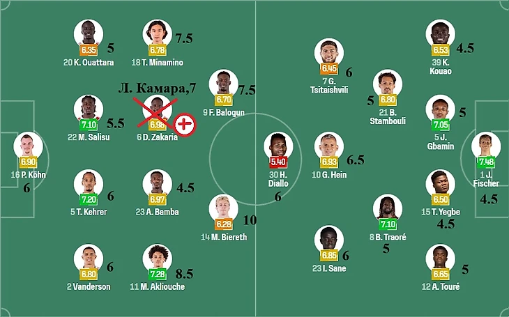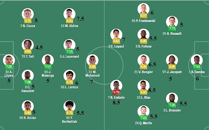 Травмы: Мама Балде (Брест, НП, 6.5), Ндомбеле (Ницца, ПЗ, 5.5), Ндайшиме (Ницца, ЗЩ, 5.5), Бомбито (Ницца, ЗЩ, 5), Абдельмонем (Ницца, ЗЩ, 4.5)