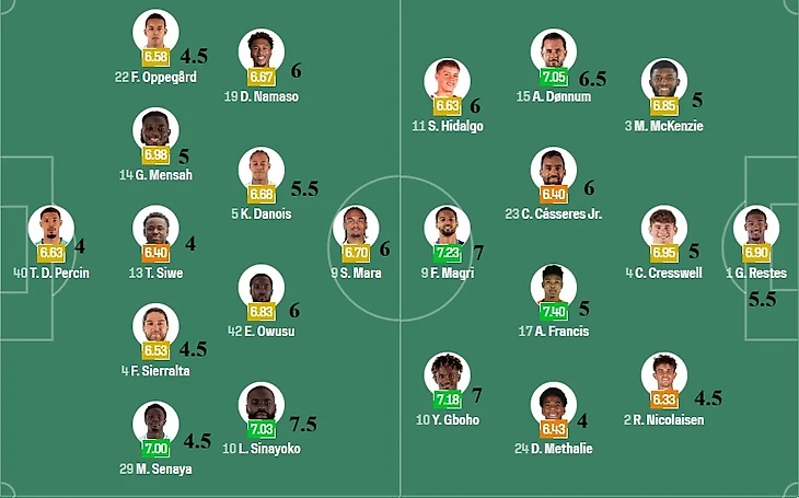 У хозяев активны у чужих ворот: Томассон (ПЗ, 7.5, 24 ФО и 12 (!) ключевых передач) и фланговые защитники Агиляр (ЗЩ, 5.5, 10 ключевых передач) и Юдоль (5, 16 ФО, 1 ассист).