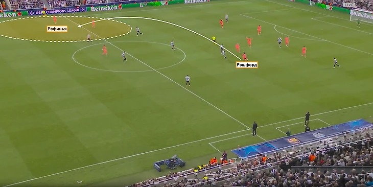 Как итог, быстрая доставка на Рафинью, а сама атака закончилась голом Рэшфорда.