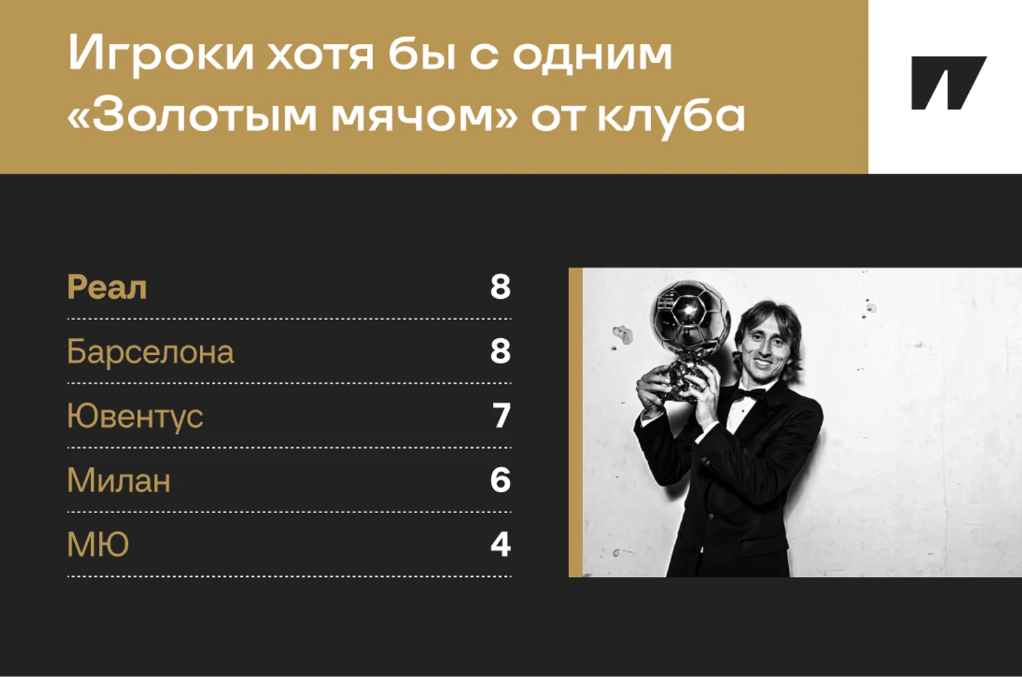 Опять же, если засчитывать только текущие клубы игроков на момент получения награды, то у «Реала» – восемь «ЗМ», у «Барсы» – шесть.