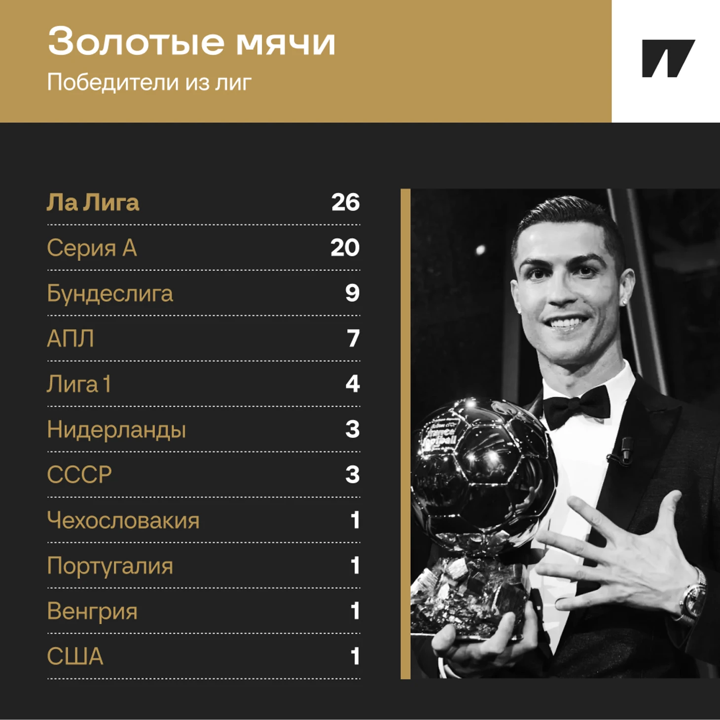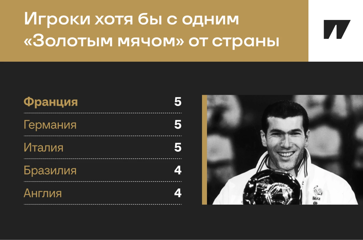Англия, Италия (по пять наград) и Испания (четыре) до топ-5 не добрались. Англичане не получали «ЗМ» с 2001-го (Майкл Оуэн), итальянцы – с 2006-го (Фабио Каннаваро), а испанцы отметились в прошлом году (Родри) впервые с 1960-го.