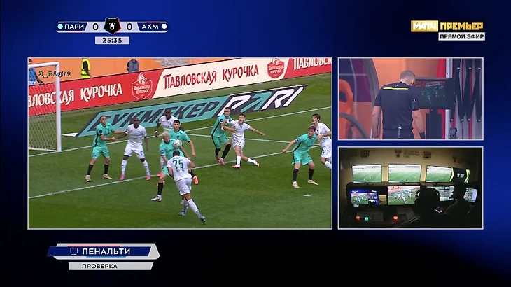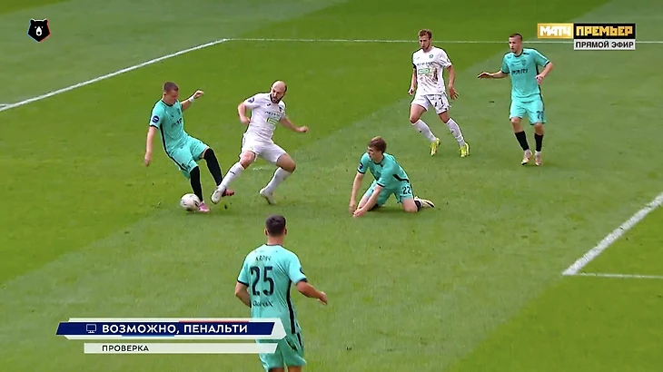 В конце первого тайма уже Георгий Мелкадзе упал после контакта с Андреем Ивлевым. Чистяков и здесь сходил к монитору: убедился, что удар по ноге был – и назначил пенальти.