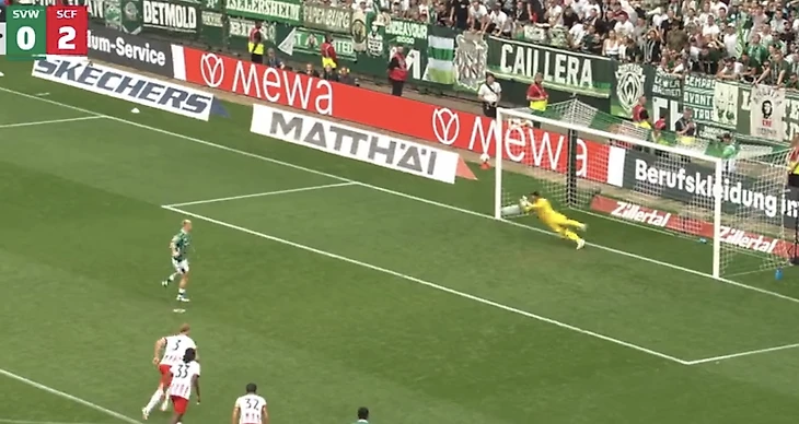 Вратарь «Фрайбурга» Ноа Атуболу установил рекорд Бундеслиги по отбитым пенальти: пять подряд! Теперь потащил удар Романо Шмида из «Вердера».