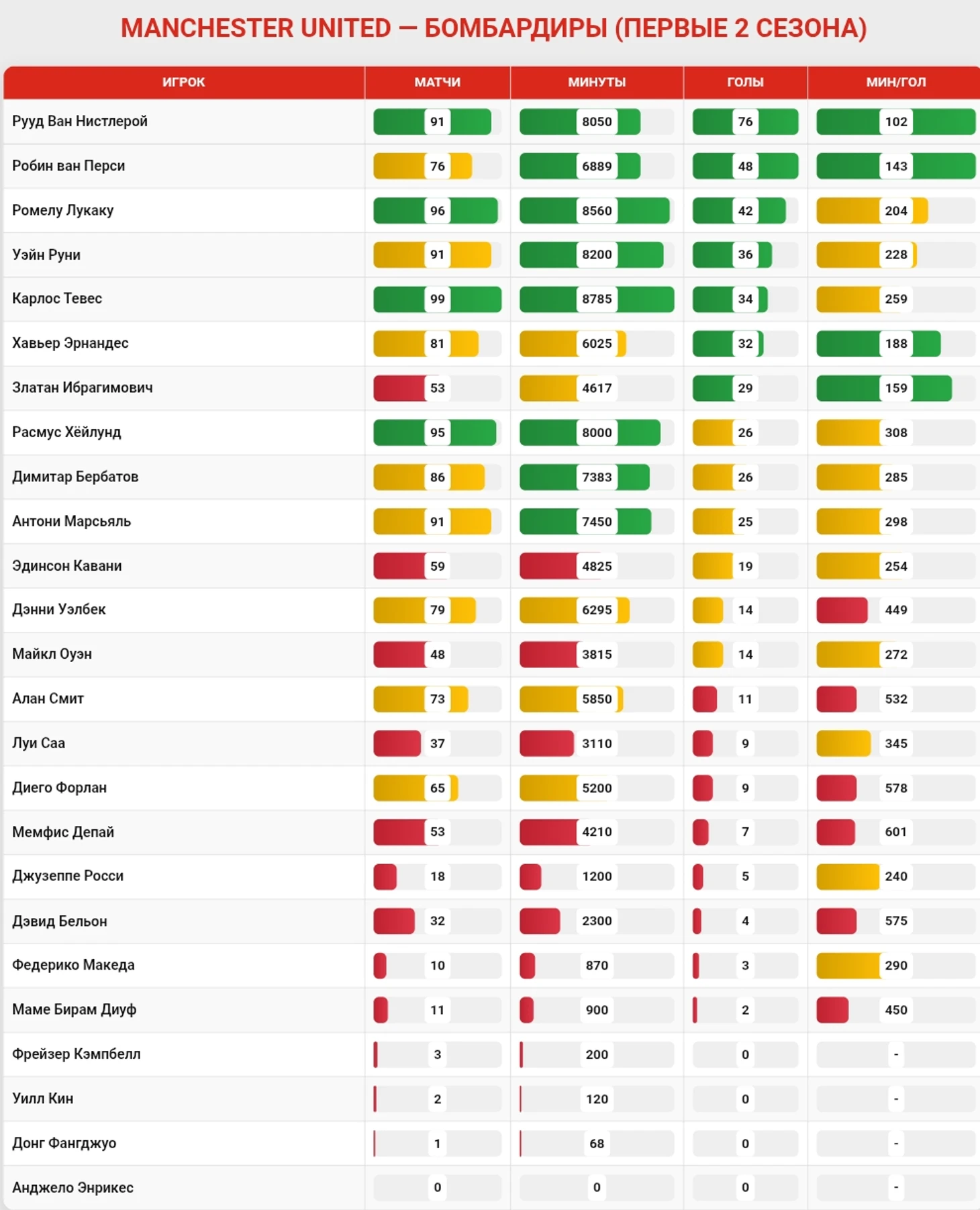 Отличных нападающих в основном связывают с эпохой Ферги, но и там нашлось достаточное количество проходных персонажей. Воспитанников с нулем матчей за основу, постарались отфильтровать, поэтому, например, нет Джошуа Кинга, но есть Анджело Энрикез, которого покупали во взрослую команду.