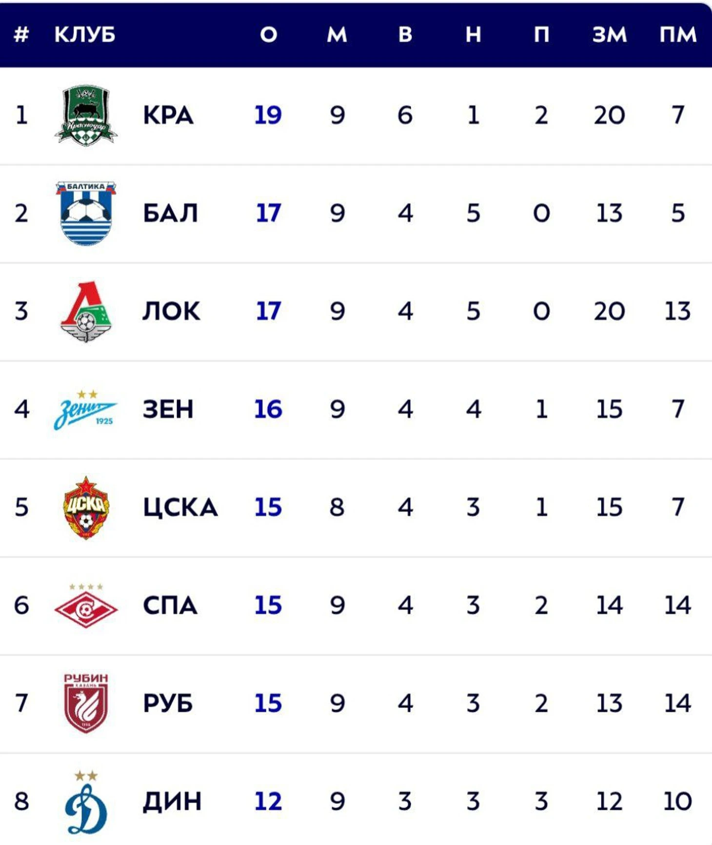 «Краснодар» по-прежнему первый, но теперь помимо «Балтики» и «Локомотива» в радиусе трёх очков находится ещё и «Зенит». Все «бесплатные» очки «быки» уже собрали: самые лёгкие соперники из оставшихся – восставший из пепла «Ростов» и крайне неудобное махачкалинское «Динамо», так ещё и оба матча на выезде, на не самых качественных полях. А ведь будут соперники намного серьёзнее – именитый «Спартак» или крайне неудобные стилистически «Ахмат» и «Балтика». Даже несмотря на по-прежнему лучшее в лиге качество игры, чемпион может испытать очень серьёзные проблемы в ближайшие пару месяцев.