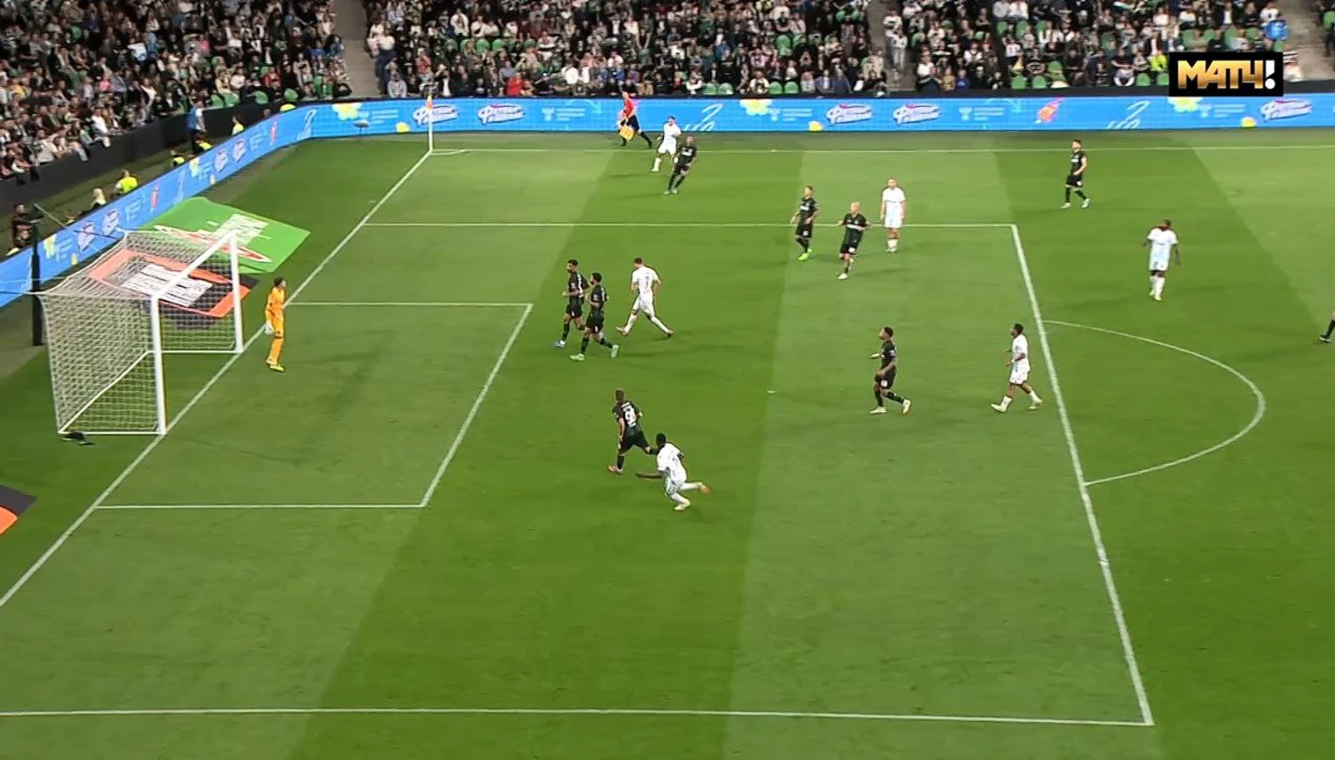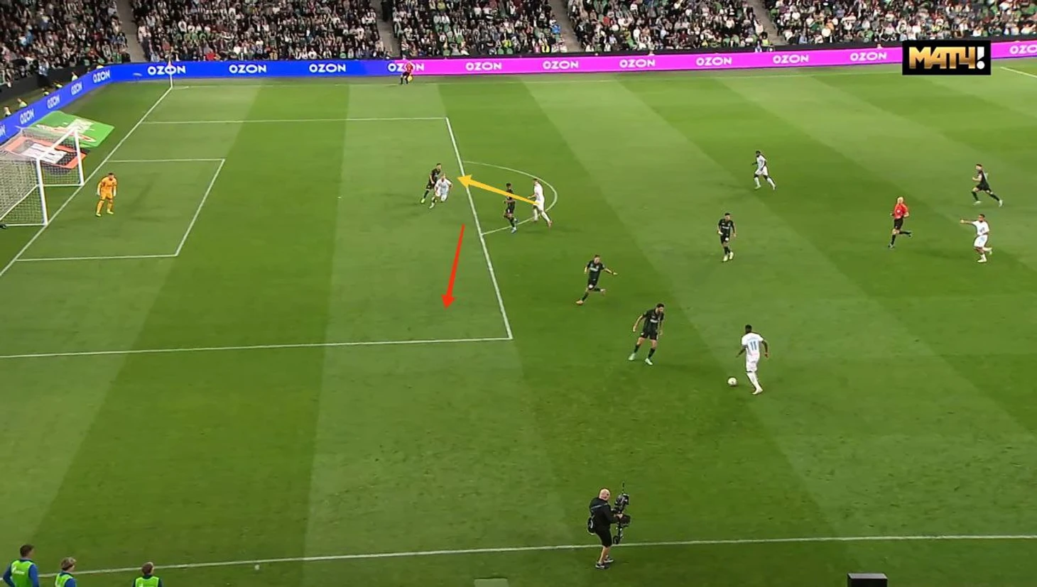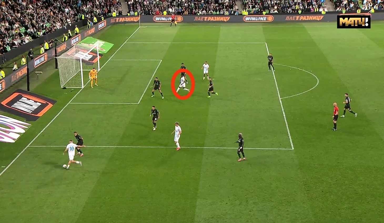 Собственно, преимущественно через навесы «Зенит» и играл, так как в своих максимально узких, низких и плотных 5-4 от «Краснодара» (Кордоба оставался в центре и в обороне не отрабатывал. И у «быков» появилась конкретная структура, празднуем!), которые получались за счёт опусканий Са левым защитником, «Краснодара» перекрыл центр.