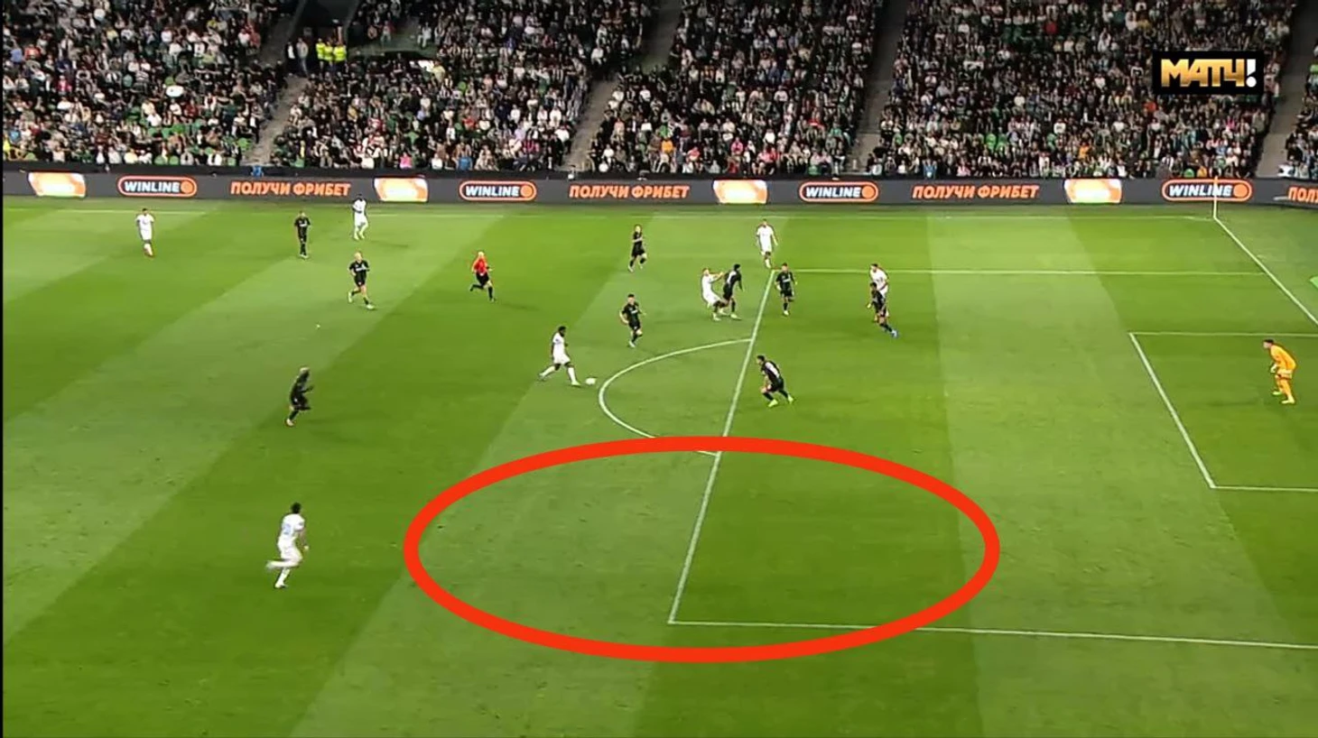 В целом же доминирование «Зенита» на этом отрезке было обусловлено упрощениями со стороны «Краснодара» – забросы на Кордобу в основном приводили к потерям, а коротких розыгрышей было мало. Так «Зенит» забрал владение, и, следовательно, контроль.