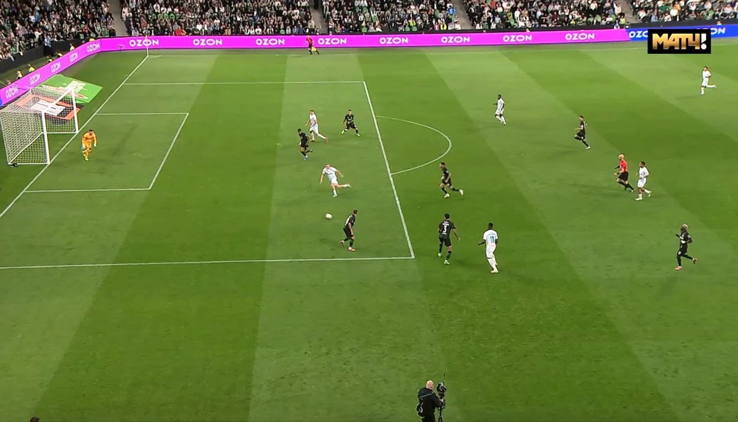 С первых же минут хозяева показали, что даже против именитого соперника не планируют отходить от своего футбола: сразу на первой же минуте традиционная для команды атака: 3-2-5, доставка мяча в полуфланг атаки и прострел низом в центр.