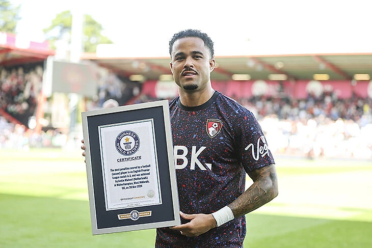 Перед матчем с «Ньюкаслом» (0:0) Джастин Клюйверт покрасовался с сертификатом, подтверждающим попадание в Книгу рекордов Гиннесса. Там полузащитник «Борнмута» оказался, сделал уникальный для Премьер-лиги хет-трик – все три гола с пенальти (игра с «Вулвз» в ноябре 2024-го).