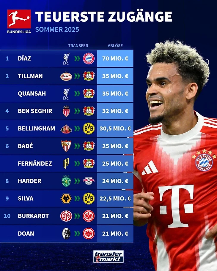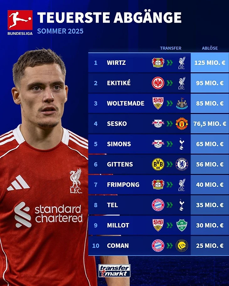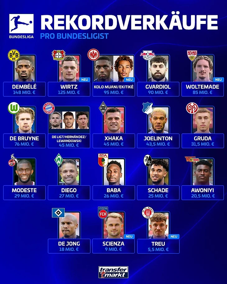 Разумеется обновился список самых дорогих продаж некоторых клубов немецкого первенства в истории: