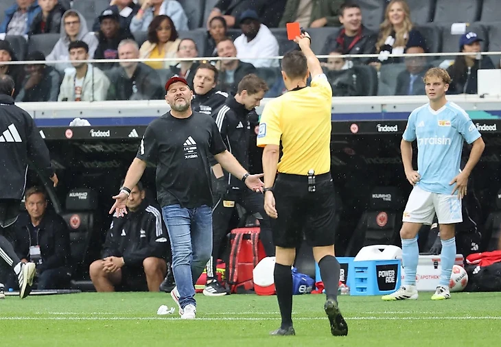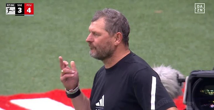 В самой концовке первого тайма «Айнтрахт» проснулся и забил два гола, берлинцы все же смогли выстоять и в итоге победили со счетом 4:3. Но команда на следующую игру вновь останется без тренера на бровке – Баумгарт получил очередную красную.