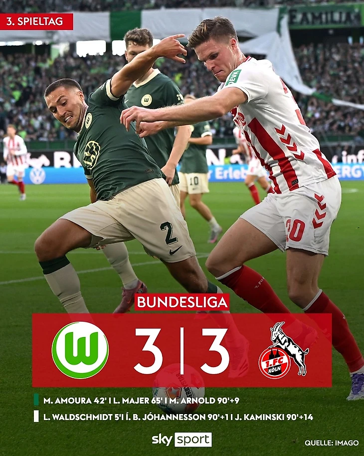 В третьем туре против «Вольфсбурга» «Кельн» здорово потрепал нервишки фанатам. «Волки» повели в счете на 65-й минуте – 2:1, уже в добавленное время соперники на двоих забили по три мяча: как только «Вольфсбург» выходил вперед, «козлы» отыгрывались. На 91-й забил новичок Исак Йоуханнессон, на 14-й добавленной минуте Якуб Каминьски вырвал для своих ничью. Не концовка матча, а перестрелка.