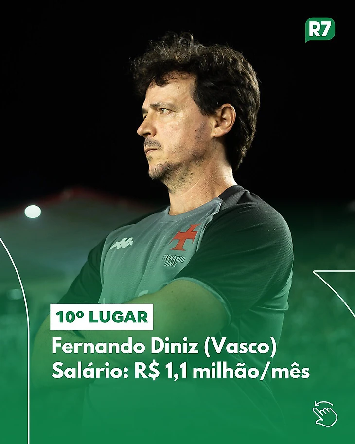 Спасающий от вылета «Васко» Фернандо Диниз с примерно 220 тысячами долларов в месяц (курс доллара к реалу 1×5,3, но будем для удобства делить на 5). Статус, который он себе заработал кубком Либертадорес и приглашением в сборную, монетизировался.