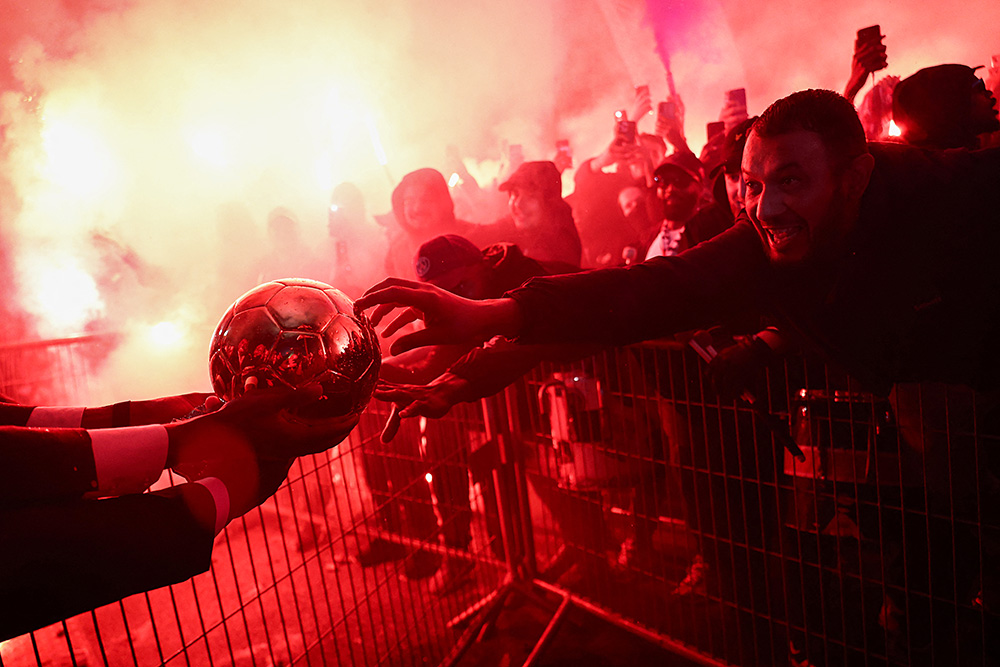 Лучшего футболиста мира окружала плотная стена из охранников, но сам Усман двинулся к болельщикам. И через забор протянул «Золотой мяч» парижанам – касание случилось! Есть лучшее фото после церемонии.