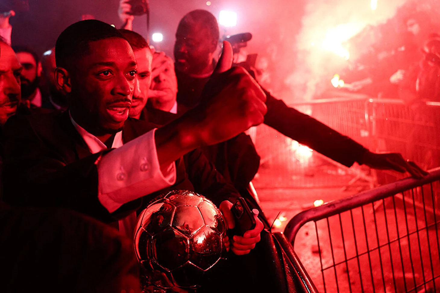 Фото ночи: Дембеле тянет «Золотой мяч» фанату. Париж гудит после победы