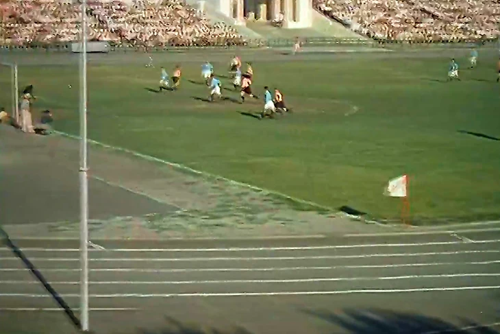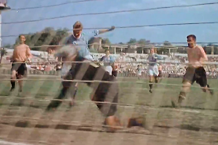 Тут Тимошенко повторяет свой приём из «Вратаря», показывая игру через призму радиорепортажа и болельщиков на стадионе. Этот метод перейдёт во все дальнейшие спортивные фильмы нашей страны: от «Одиннадцати надежд» до «Тренера» с Данилой Козловским. Только Набутов стал одним из первых, кого вообще не было видно в кадре, практически 15 минут экранного времени подряд.
