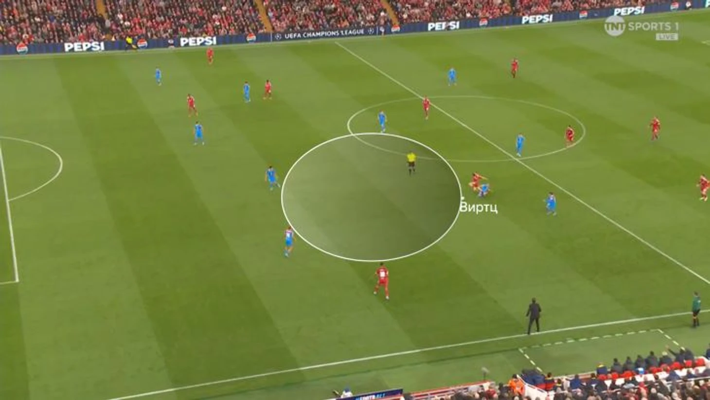 Подобные маневры Флориана еще и помогают преодолевать прессинг. Так Мак Аллистер на рывке выбрался на чужую половину после смещения Виртца на фланг.