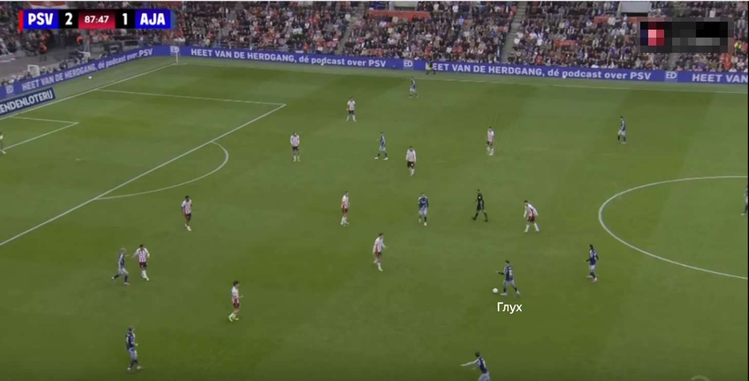 Баланс в игре сместился. «Аякс» перевел коробку передач в режим «активный прессинг». Теперь команда не окапывалась в низком блоке, игроки провоцировали ошибки соперника, оказывая давление прямо у чужой штрафной. На отрезках «Аякс» даже забирал контроль над игрой. Общие соотношения владения стабилизировалось. 51 на 49 по второму тайму в пользу ПСВ.