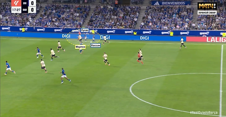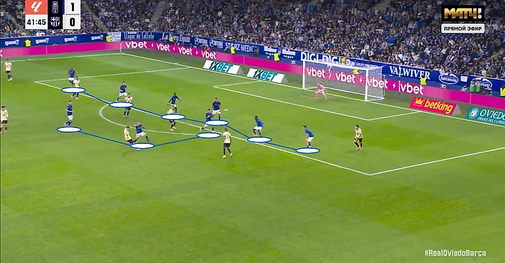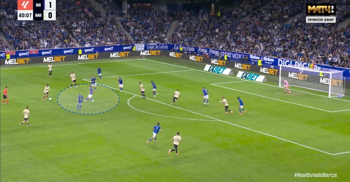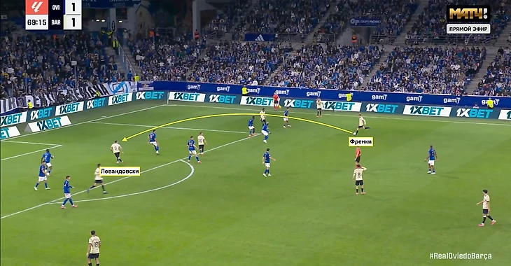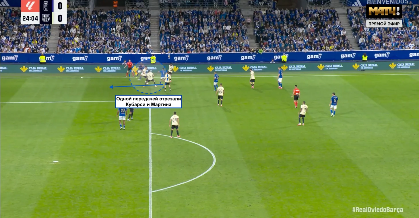 На удивление, второй тайм «Овьедо» снова начал открыто. Не стали замыкаться в низком блоке, наоборот, навязывали борьбу. На этом фоне и «Барселона» с заменой в центре поля — вместо Касадо вышел Френки — стала создавать остроту у ворот соперника.
