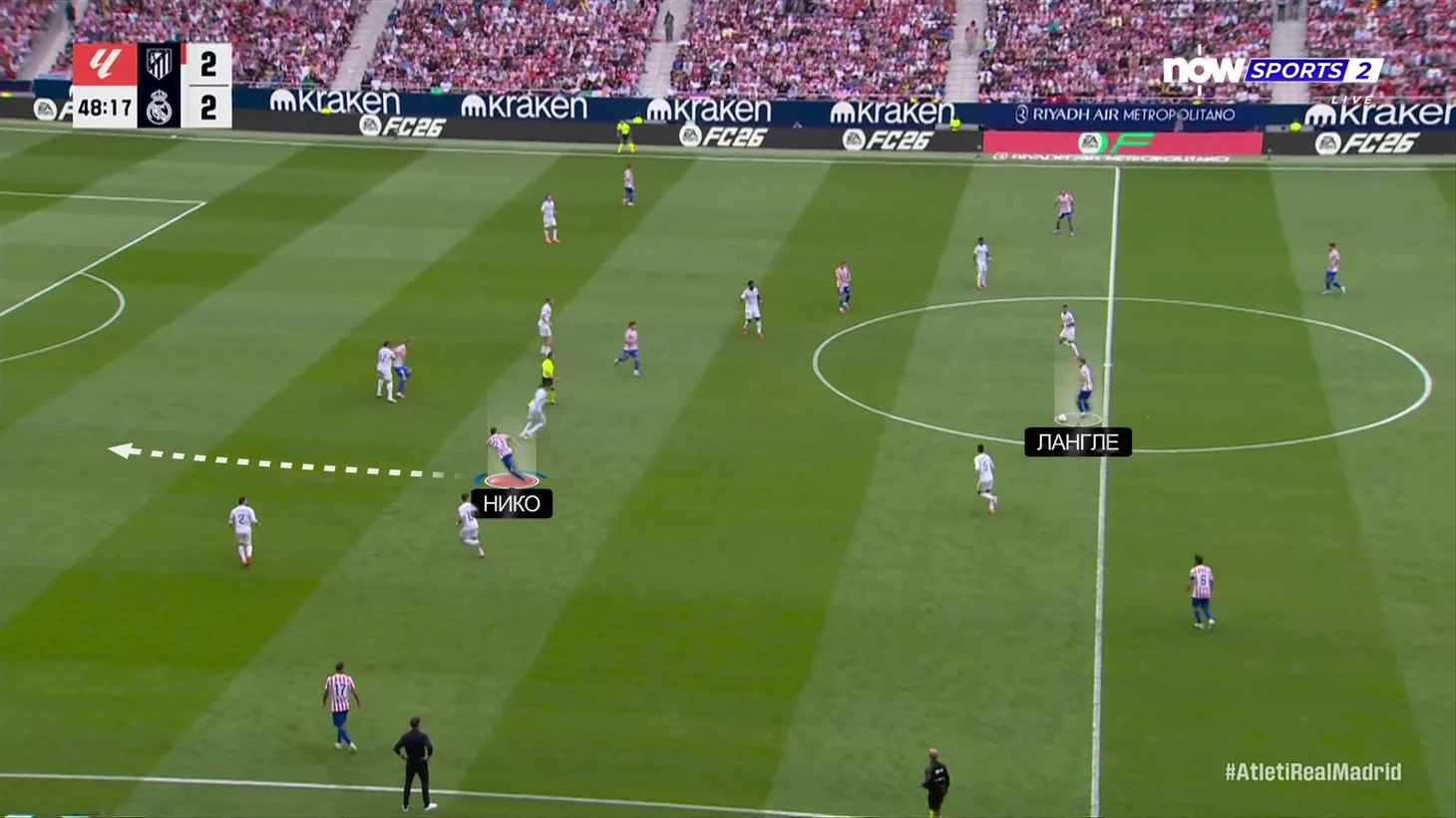 Главные ответственные за вертикализацию – Клеман Лангле и Коке. За рывки – Нико Гонсалес и Серлот. Важно: команда сразу и всегда искала такой вариант даже без попыток проверить соперника иначе. Прошлые соперники «Реала» не били в эту точку настолько осмысленно и синхронно, плюс не обладали настолько подходящими исполнителями.