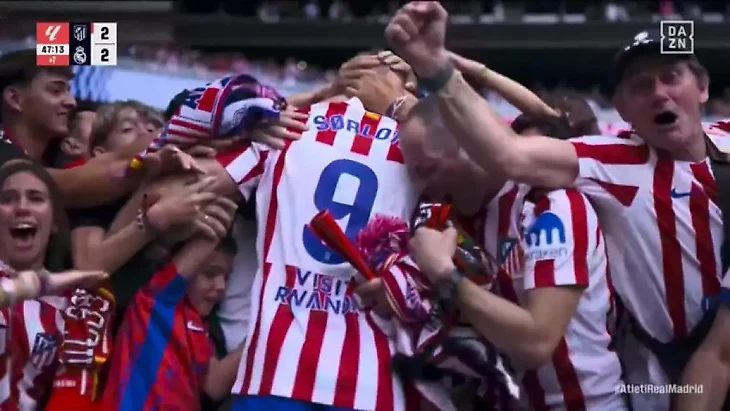 После того как Александр Серлот сравнял счет в матче с «Реалом», форвард «Атлетико» прыгнул прямо на трибуны, празднуя с болельщиками.