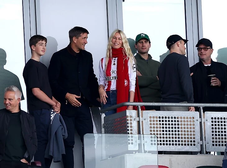 Немецкая супермодель и наша хорошая знакомая после второго выпуска Занятных штучек АПЛ вновь посетила домашний матч «Брентфорда». Муж Шиффер, режиссер и продюсер Мэттью Вон, летом вложился в клуб. И явно повысил статус гостей на стадионе.