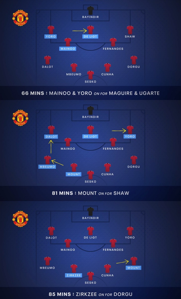 На секунду мы поверили, что «МЮ» сыграет четверкой: Патрик Доргу и Диогу Далот на краях обороны, тройка в центре Бруну-Майну-Маунт.