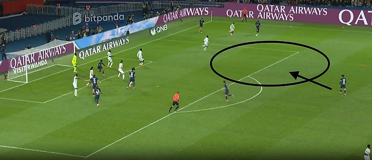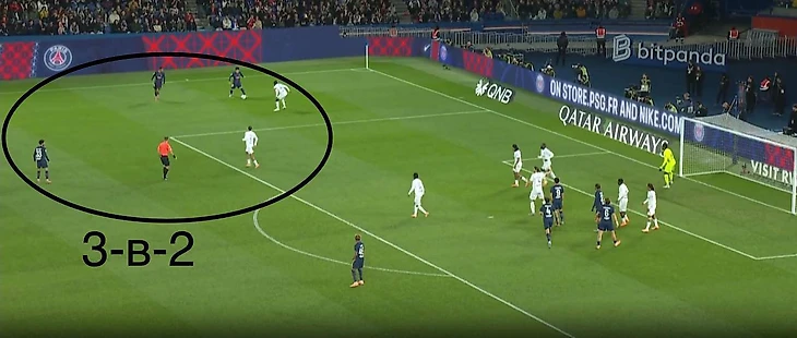 Оба гола – следствие розыгрышей угловых накоротке. Два игрока «ПСЖ» перегружали угловой флажок, в первом случае играли на свободного третьего в опорной зоне, во втором – готовили голевую подачу вдвоем (хотя даже так сохранялась опция сыграть на третьего благодаря численному превосходству в зоне мяча).