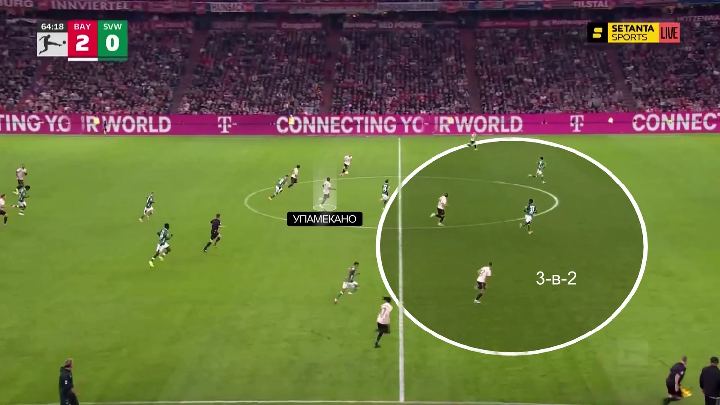 После выхода через Упамекано «Бавария» получила приятное соотношение на чужой половине и довела до гола: