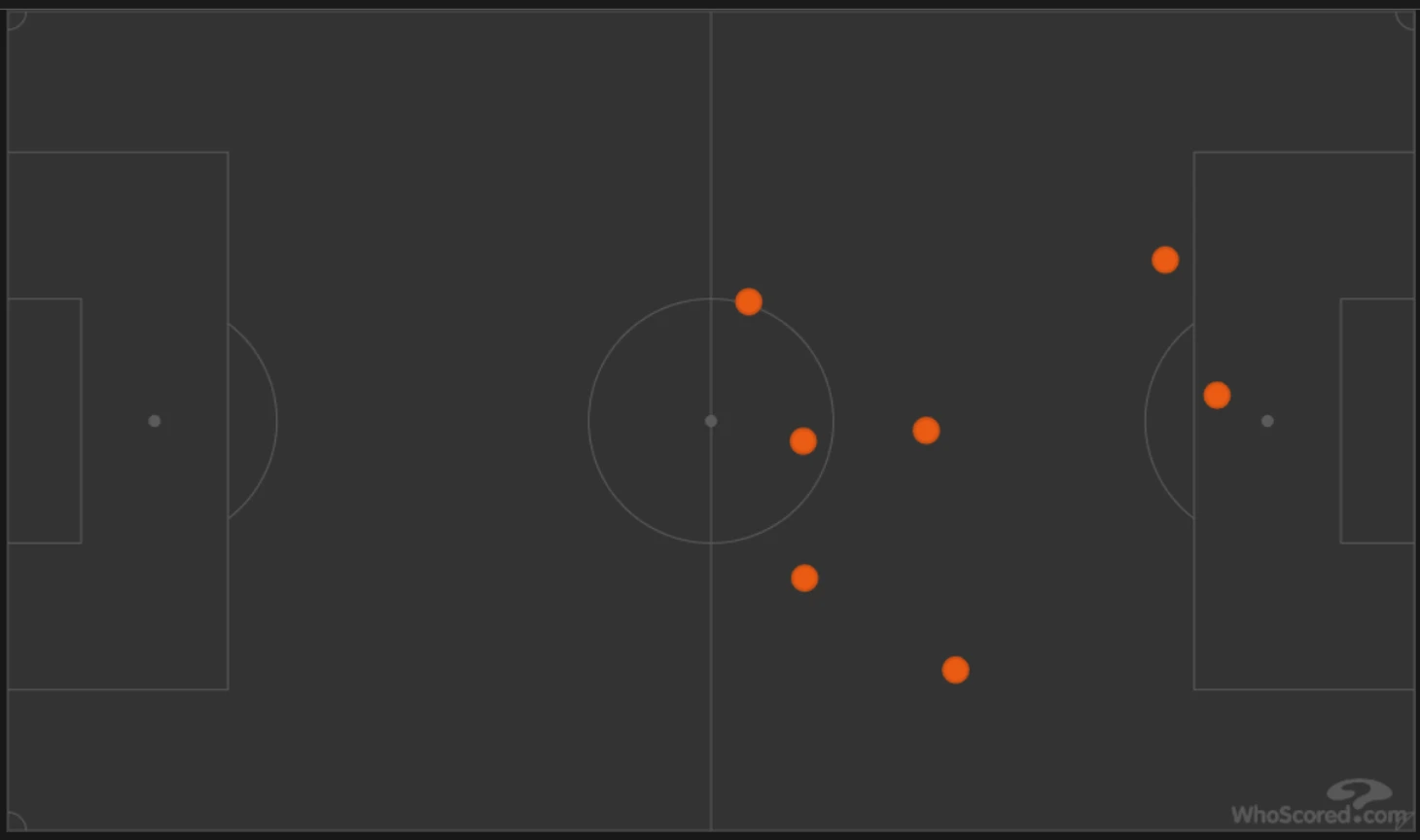 Эффективность снова была нулевой. На этом этапе Модрич часто смещался в последнюю линию и становился одним из центральных защитников в автобусе. Характерно, что 2 из 5 перехватов он сделал в последние 10 минут в собственной штрафной.