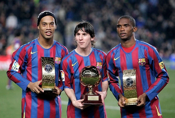 Роналдиньо и Это’о с призами ФИФА-2005, Месси – с наградой Golden Boy.