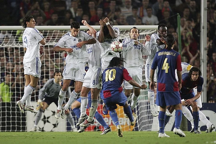Один из величайших матчей в истории ЛЧ. Моуринью против «Барселоны». Машиноподобный «Челси» в 2005-м на «Стэмфорд Бридж» ведет 3:0 к 19-й минуте. Роналдиньо отыгрывает один с пенальти. А затем...