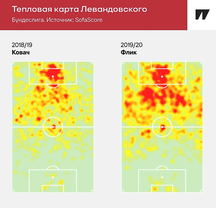 Тенденция накладывается на сильные качества Роберта, который даже в 36 лет тонко ловит момент для забегания. Так Левандовски стал идеальным форвардом для идей Флика.