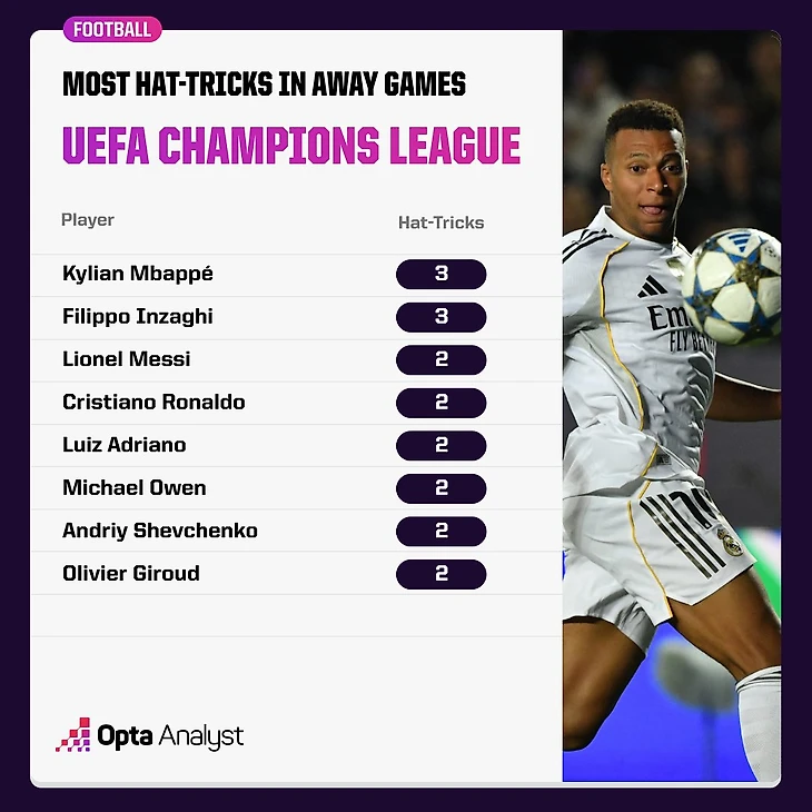🔥 Мбаппе вошел в историю Лиги чемпионов. Никто не оформлял выездных хет-триков больше, чем он
