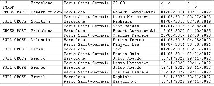 3.Соперники играли за один и тот же клуб (возможно в разное время- NO CROSS)