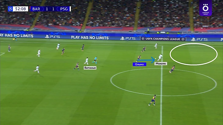 В этом эпизоде Витинья увел Ольмо из первой линии прессинга и сбил персональную ориентировку Эрика Гарсии, в чем португальцу помог Нуну Мендеш, который опустился ниже и взял с собой Кунде.
