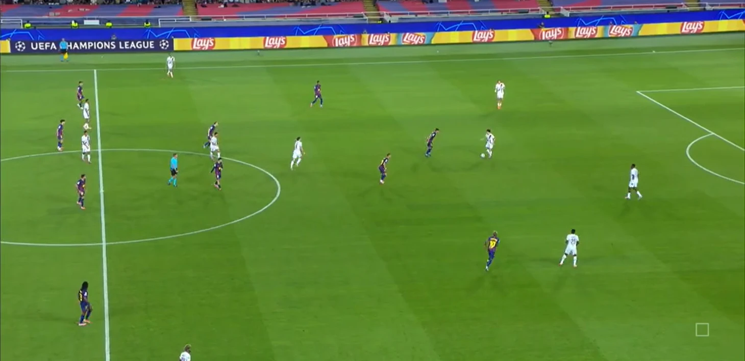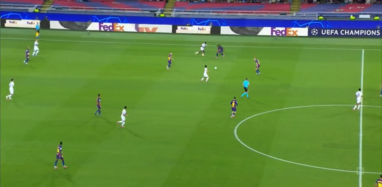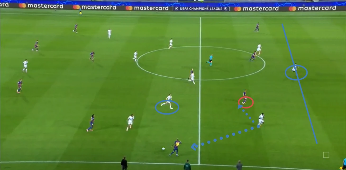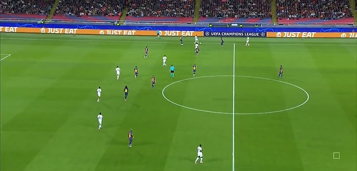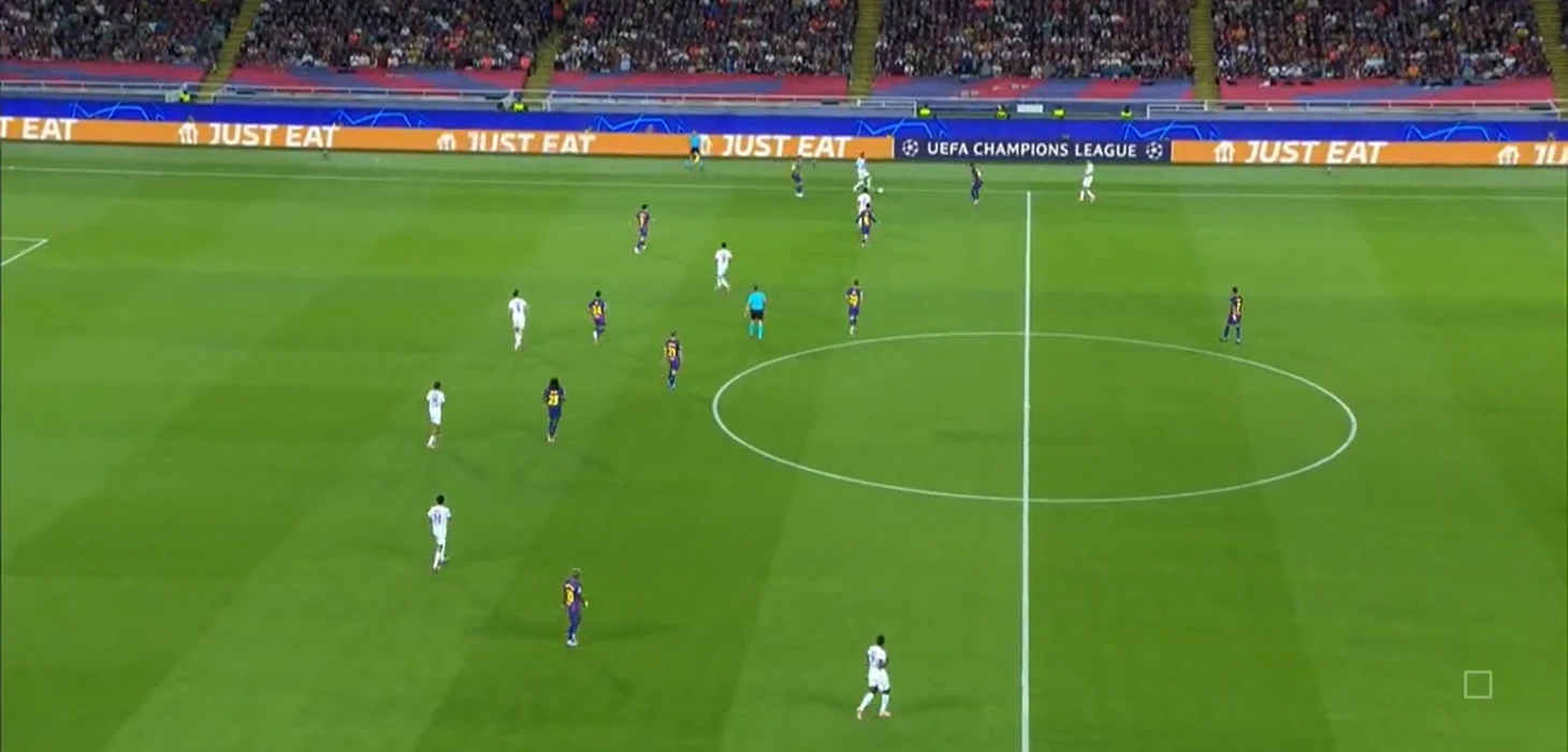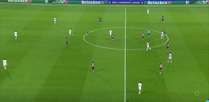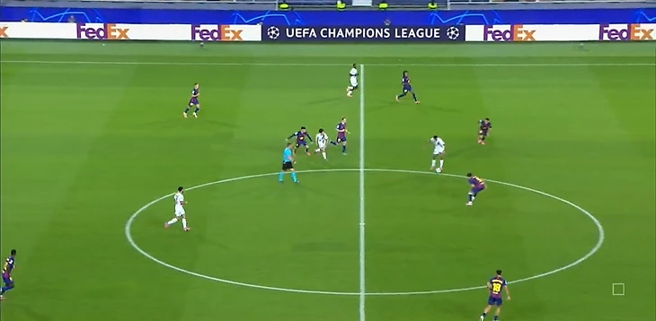 Из отлично работающих (как минимум первые 35 минут) инструментов «Барселоны» в первом тайме также можно выделить грамотный прессинг – команде хватало концентрации, чтобы выдерживать высокую офсайдную линию и создавать большинство в зоне мяча.