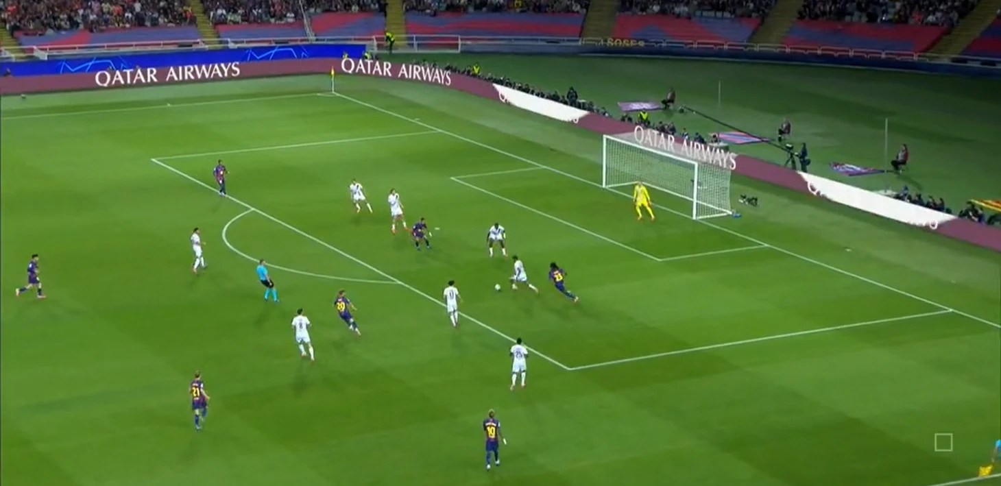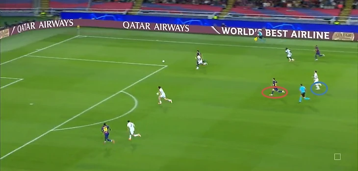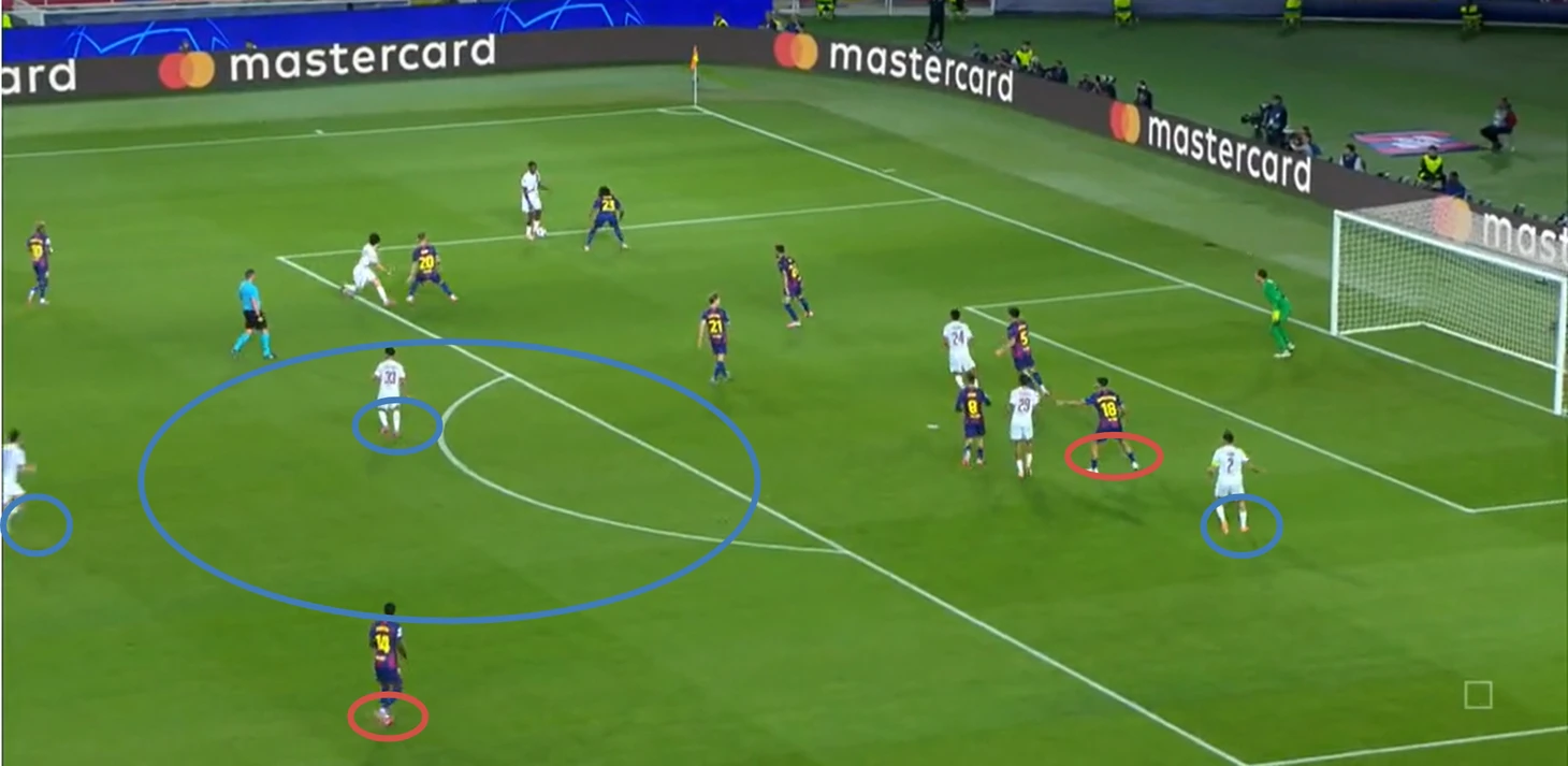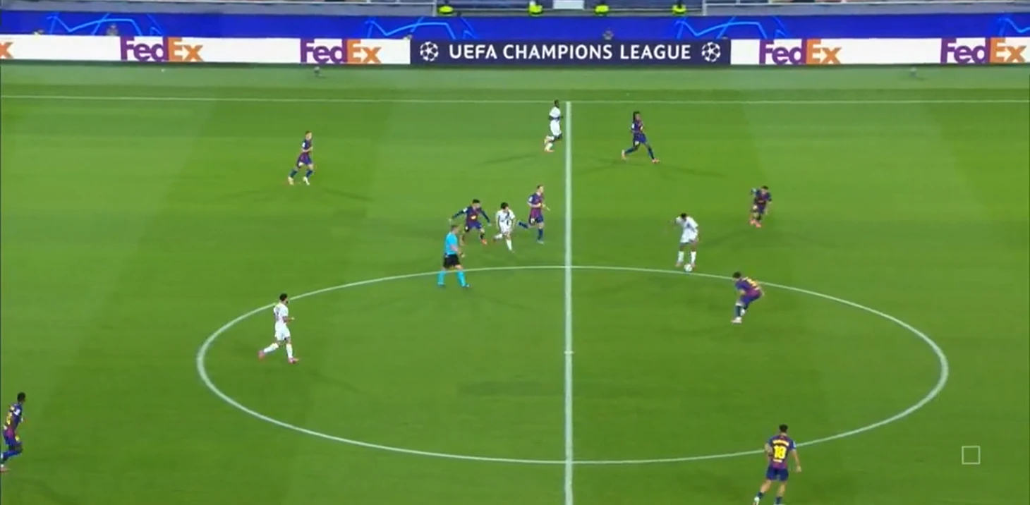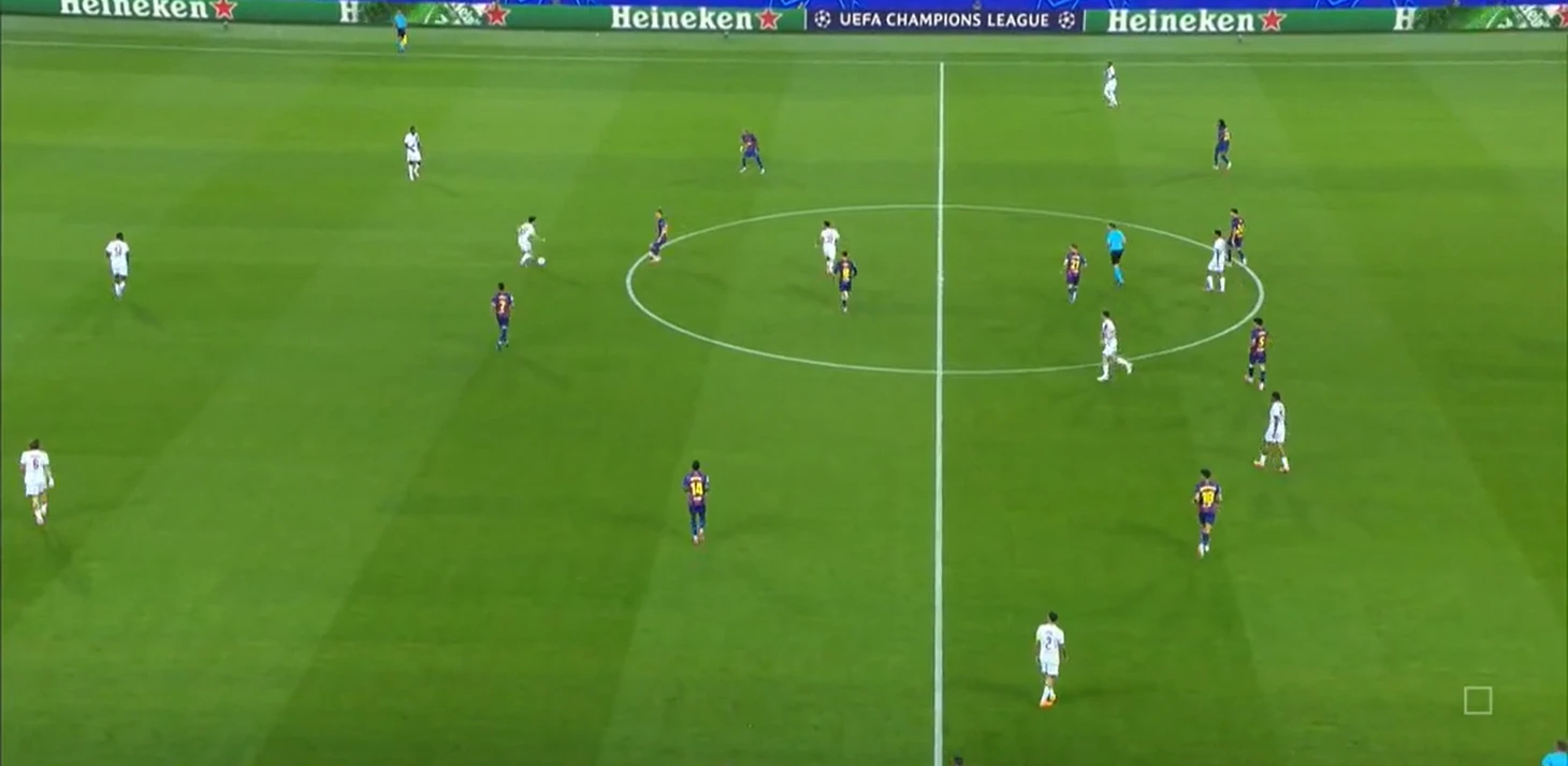 Из отлично работающих (как минимум первые 35 минут) инструментов «Барселоны» в первом тайме также можно выделить грамотный прессинг – команде хватало концентрации, чтобы выдерживать высокую офсайдную линию и создавать большинство в зоне мяча.