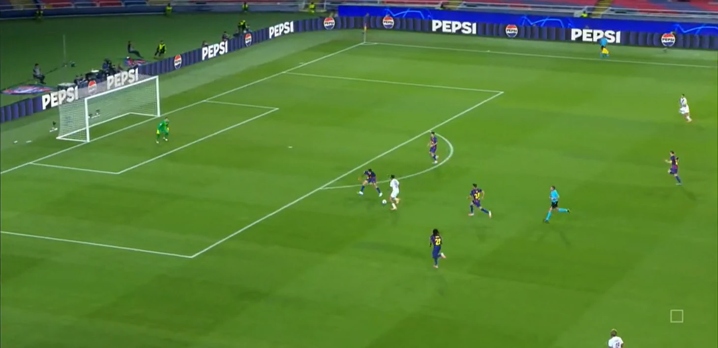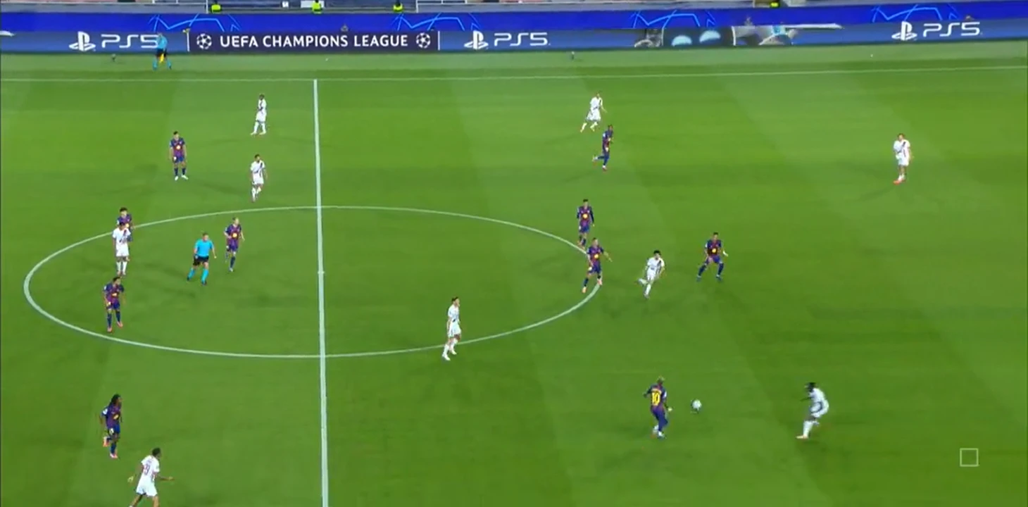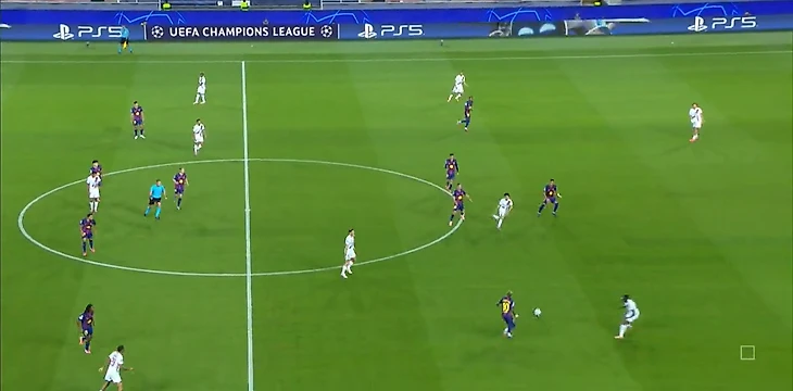 3. За счёт страха быть обыгранным, получить момент у своих ворот подавляется атакующая активность соперника. На деле этого не случилось. Мендеш спокойно шёл в атаку и в результате сам посадил на ЖК де Йонга и даже отдал голевой пас.