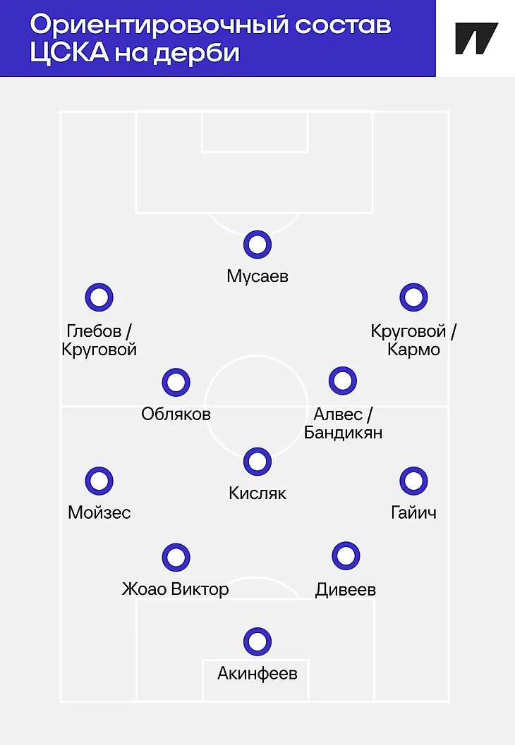 Мойзес (ЦСКА). Может стать икс-фактором дерби. Непроходим сзади за счет мощи и скорости и даже с учетом оборонительных проблем ЦСКА индивидуально очень силен. К надежности бразилец добавляет острые подключения в атаку: в этом сезоне сделал 2 ассиста – больше в ЦСКА только у Кисляка (4). Прижимает кроссами/прострелами и силовым дриблингом. Наверняка его рывки в ширине пару раз упустят, еще пару раз Мойзес продавит сам. Еще одна деталь – бешеная харизма. Она помогает Мойзесу сверкать в топ-матчах.