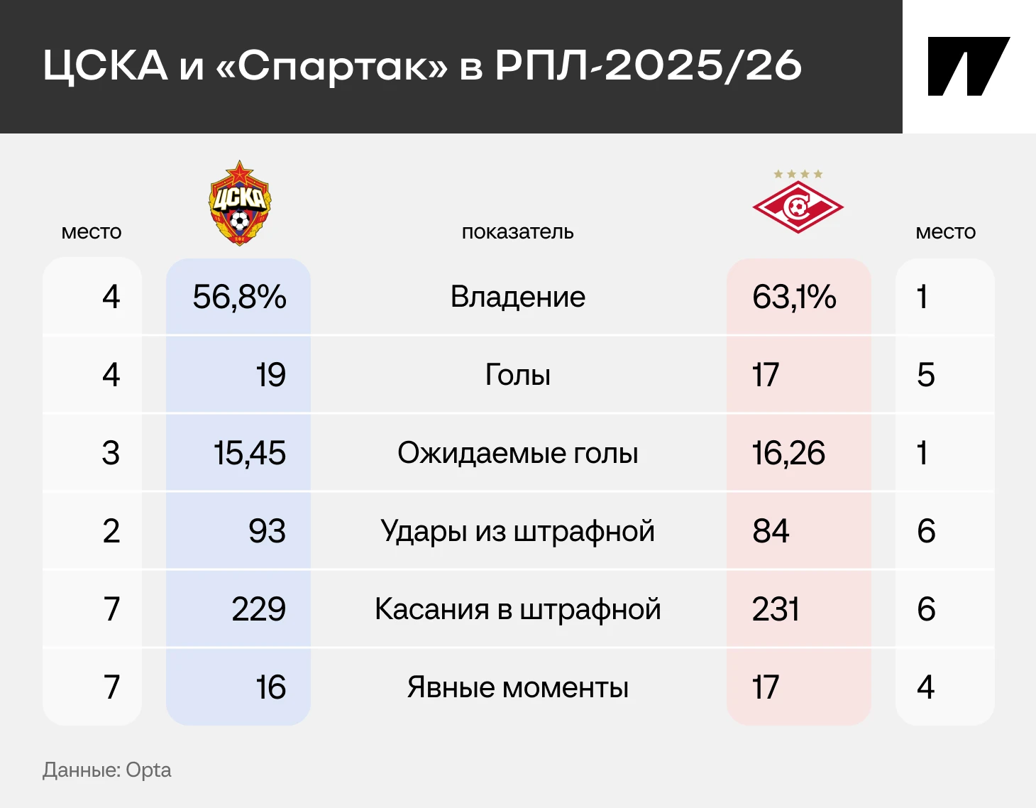 Скорость ЦСКА – тест на стрессоустойчивость «Спартака». Команда Челестини в топ-4 РПЛ по владению, но контроль не усыпляет, а приводит к хаосу: ЦСКА быстро двигается, а полузащитники и вингеры раскручивают позиционные атаки еще сильнее.